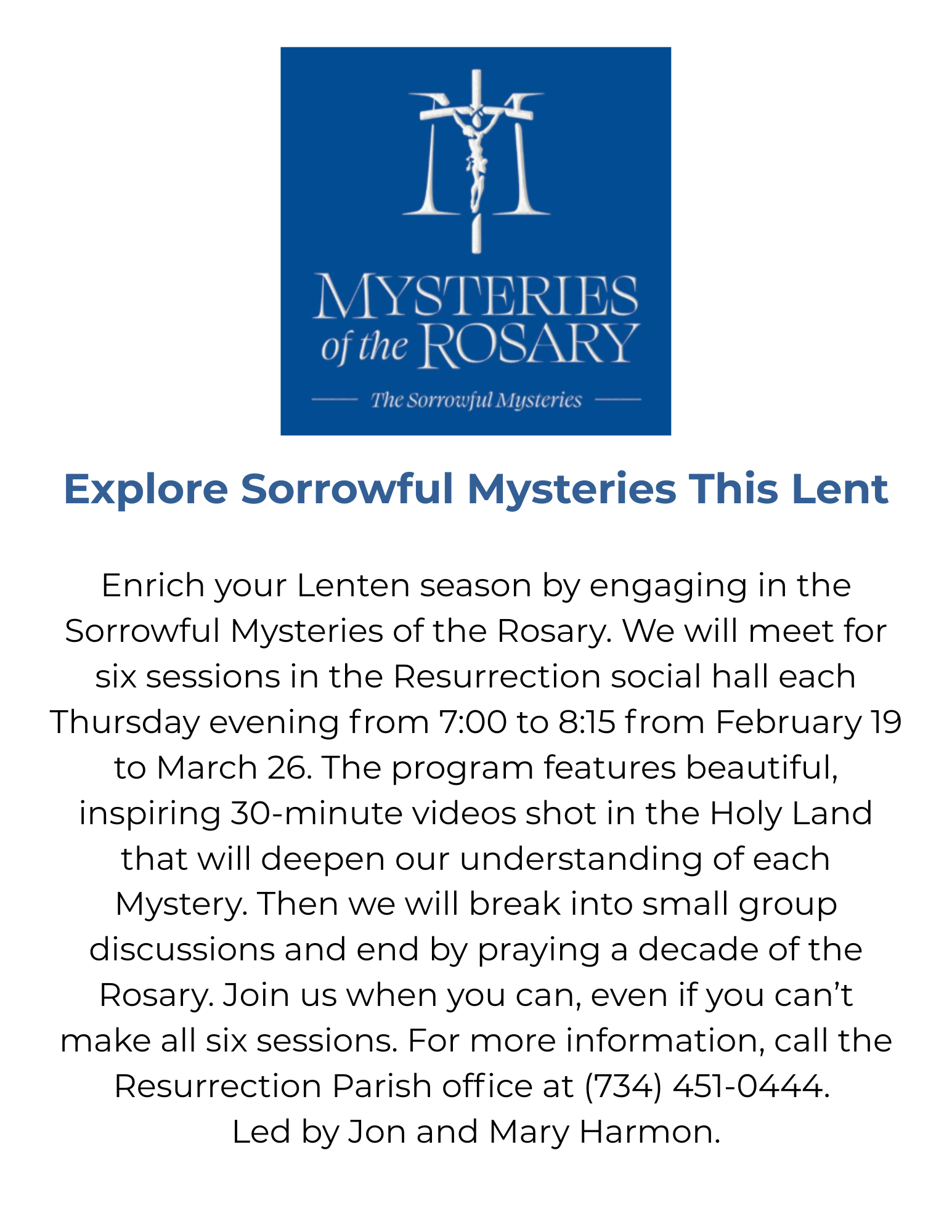 If Plymouth-Canton Schools are cancelled for weather, we will NOT have daily Mass.