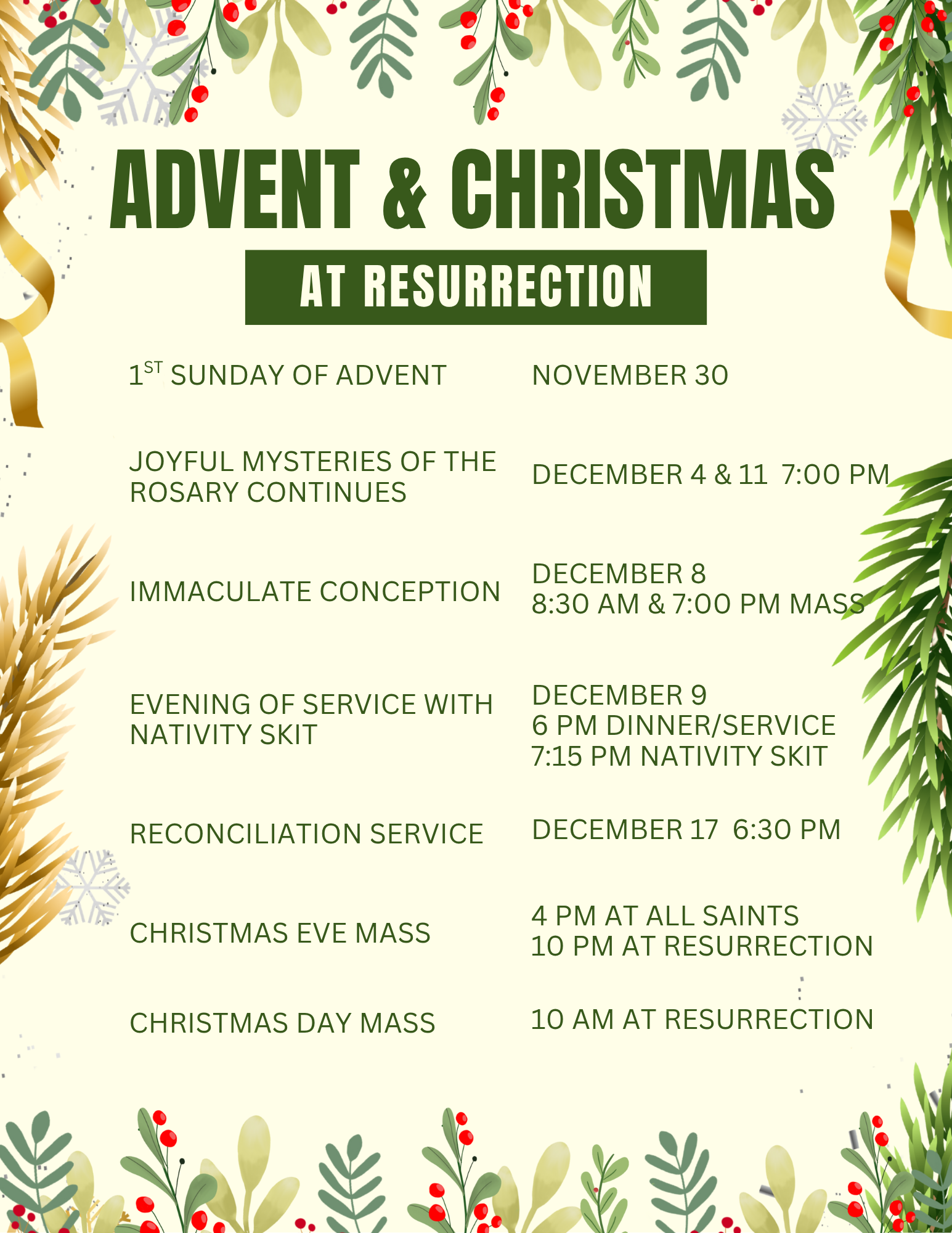 Monday, December 8: 8:30 AM & 7 PM Masses